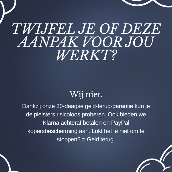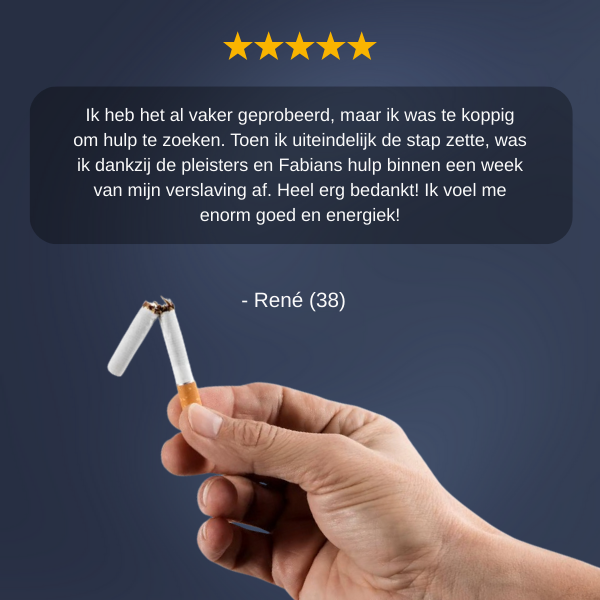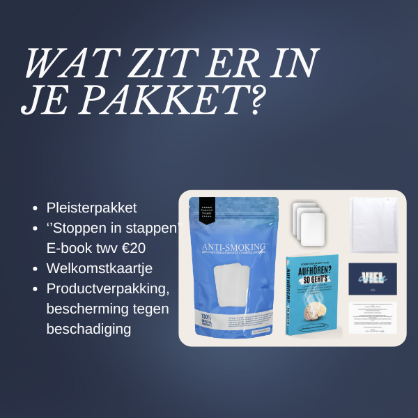 Anti-smoking patches reduce the craving to light up a cigarette, often within 5-10 days. It suppresses withdrawal symptoms such as headaches, insomnia and low mood. Unlike traditional nicotine patches, there is no over- or under-dosing, one size fits all. They are suitable for both men and women and are fully reimbursed if you stop smoking.